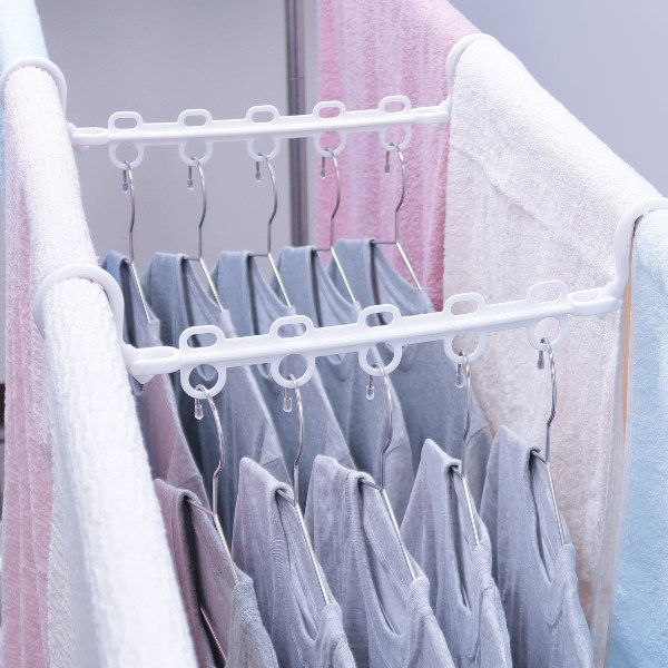 竿と竿の間に渡して、物干しスペースを確保できるリレーハンガーです。デッドスペースを有効活用してたくさん洗濯物を干すことができます。また、リレーハンガーごとまとめて取り込め、そのまま収納もできます。ホワイトカラーが清潔感のある印象で、安心の日本製です。