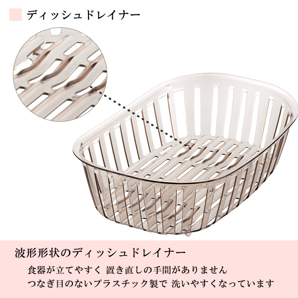 材質:ディッシュドレイナー/PET トレー本体・ノズル/ポリプロピレン 止水栓/シリコーンゴム