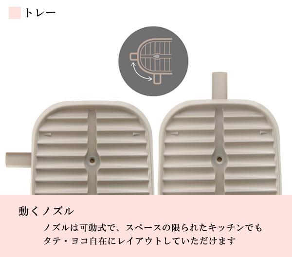 排水ノズルは縦・横に動かせるので、置き場所を選びません。