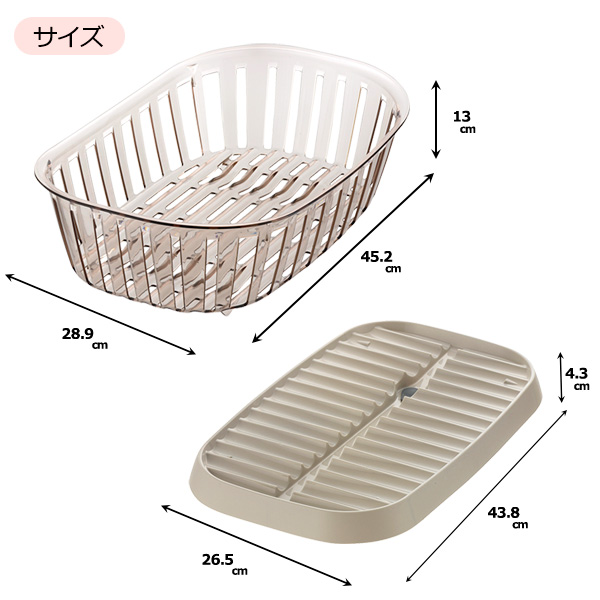 ディッシュドレイナーサイズ(約):幅45.2×奥行28.9×高さ13cm 内寸/幅38×奥行15.6×高さ9.2cm