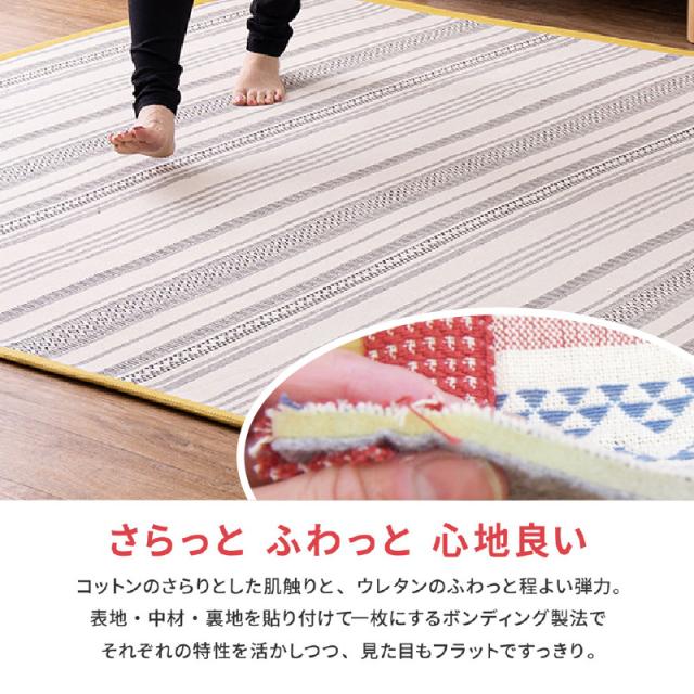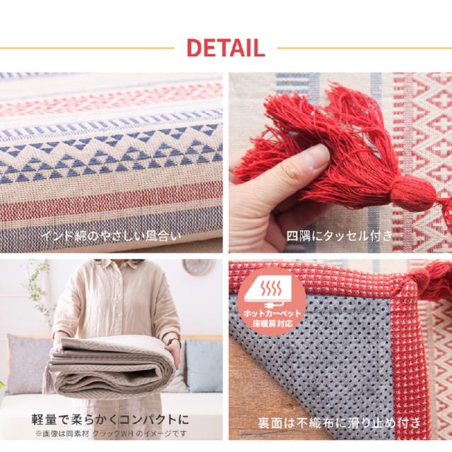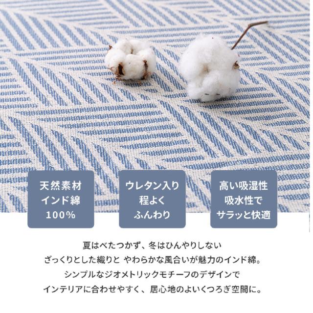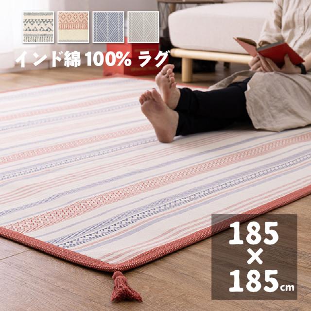 ■メーカー直送■洗える インド綿100% ラグ【2畳相当:約185×185cm】滑り止め付き