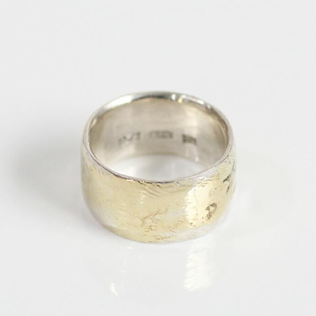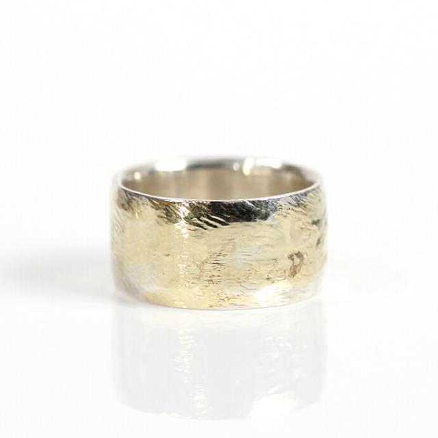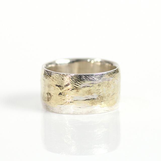 少し丸みを帯びたシルバーのリングにk18ゴールドをあえてムラの出るように塗ったリング。