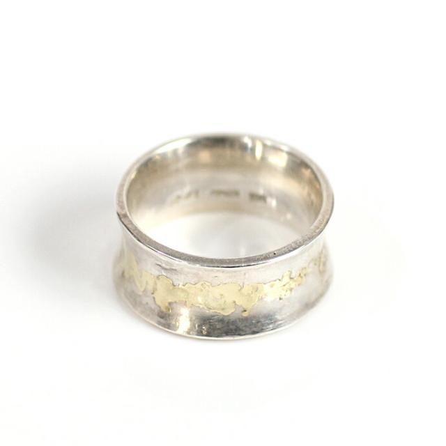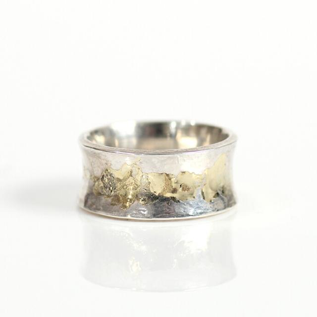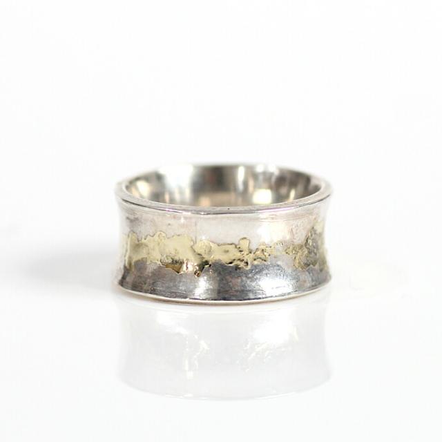 シルバーの個性的な形をしたリングにk18ゴールドを