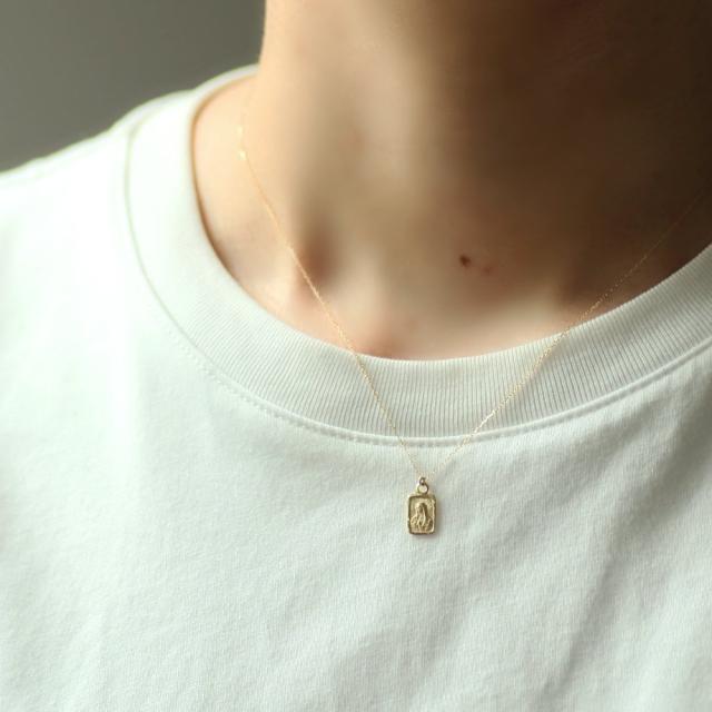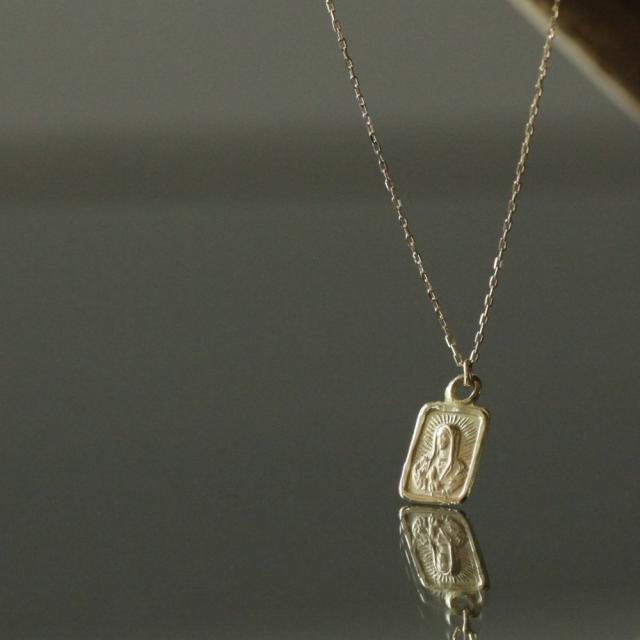 k18ゴールドでつくられた小さなマリア様のレリーフが美しいネックレス。