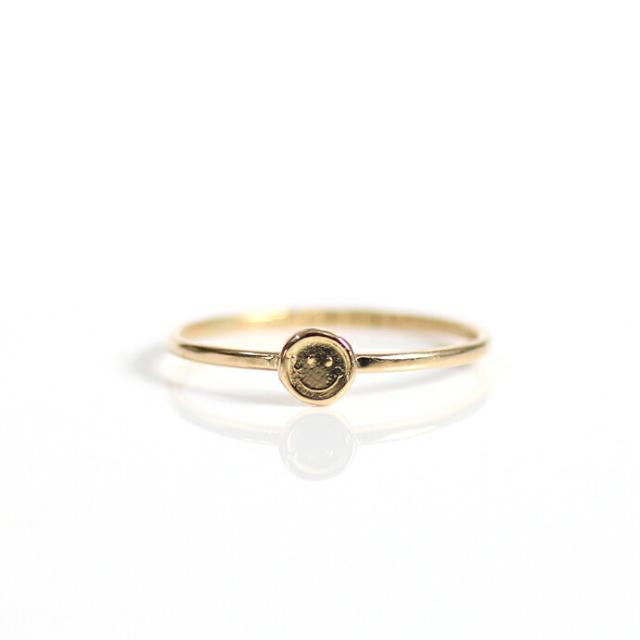 スマイルマークをスタンプしたモチーフが可愛らしいk18ゴールドのリング。