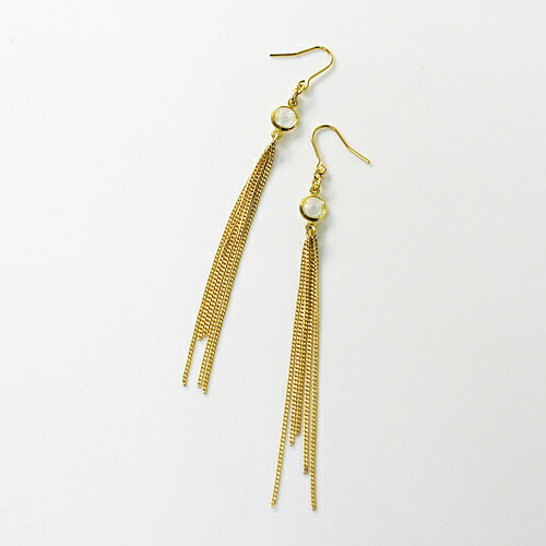 華奢なチェーンフリンジと、ストーンパーツをあしらったピアス。