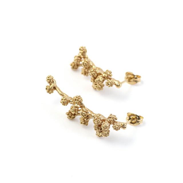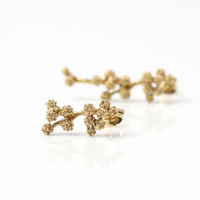 女性らしいミモザモチーフのピアスで、大人のお洒落を楽しんで。