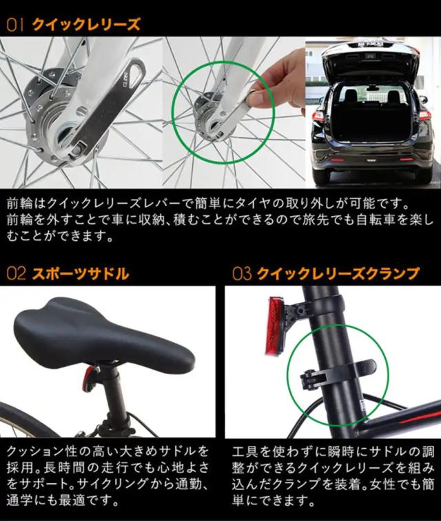 ※全ての自転車は工場出荷時に点検・調整済みですが、運送時の振動などにより調整に狂いが生じる場合があります。そのため変速機、ブレーキについては購入後に再調整をお願致します。