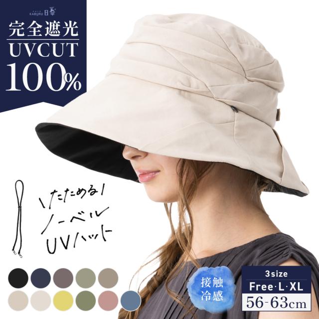 ノーベルUVハット(001) 帽子 レディース 大きいサイズ 完全遮光 UVカット つば広 折りたたみ 自転車 日よけ かぶーる日傘(かぶる日傘) 春夏 母の日 UV 帽子 あご紐 56-63cm 小顔効果 UV 紫外線 UVカット 紫外線カット 自転車でもあご紐で飛ばない