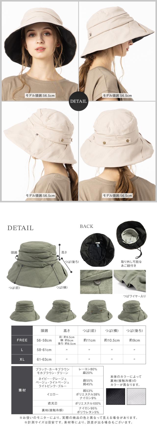 ■サイズ・各部■フリー 56-58cmL 58-61cmXL 61-63cm高さ約9.5cmつば約10.5cm※高さは着用時の高さを記載致しております。デザインや形により被り心地、印象が異なります。■素材■【ブラック、カーキブラウン、ベージュ】 レーヨン80%・麻20%【ブラウン、ネイビー】 麻50%・綿40%・ポリエステル10%■クリーニング■・色落ちの恐れがありますので、単独で洗濯してください。・手洗い洗濯後、形を整え風通しの良い場所で陰干ししてください。※通常は、汚れている部分を濡れたタオルなどで洗う程度にしてください。【人気検索キーワード】UV 紫外線 2021 春新作 夏新作 リネン マリンキャップ 防水 ハット 撥水 帽子 レディース 大きいサイズ 大きめ 小顔 sサイズ 完全遮光 遮光100%カット UVカット 帽子屋Loo&c 帽子屋ルーアンドシー キャスケト キャップ CAP ハット UV 折りたたみ 自転車 飛ばない 日焼け たためる帽子 あご紐 つば広 春 春夏 夏 UV 紫外線 運動会 旅行 海 山 アウトドア 母の日 プレゼント 10代 20代 30代 40代 50代 60代 サイズ 56cm 57cm 58cm 59cm 60cm 61cm 62cm 63cm 64cm 人気 ランキング オシャレ かぶーる日傘 かぶる日傘