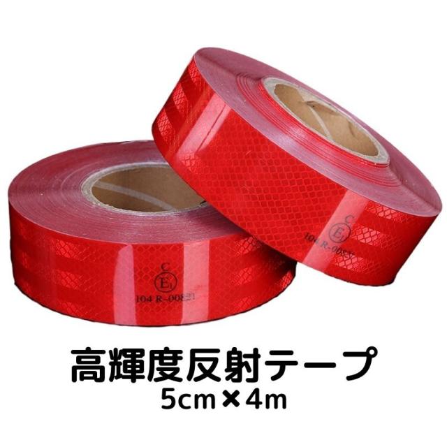 超高輝度反射テープ 5cm幅×4m レッド 反射シール赤 高反射力テープ トラック自動車バイク自転車などに 夜間追突防止安全対策ステッカー リフレクター