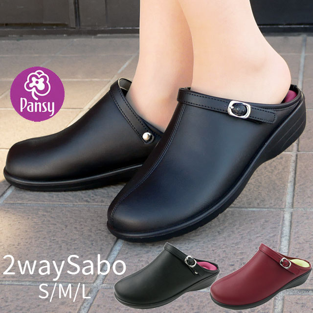 送料無料 レディース コンフォートサンダル サンダル 人気 流行 Pansy 2WAY 6860 パンジー ウェッジソールサンダル クロッグサンダル ミセス つっかけ サボサンダル 靴 ブラック 黒 ワイン テレワーク 在宅勤務