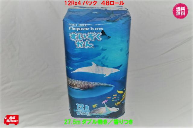 大特価すいぞくかん/トイレットペーパー27.5m巻ダブル★/香り付/12Rx4 48個入り♪たくさんの水族館のお魚さんがとてもかわいいトイレットペーパーでお魚のお勉強にもなります 地域別送料無料