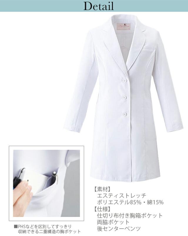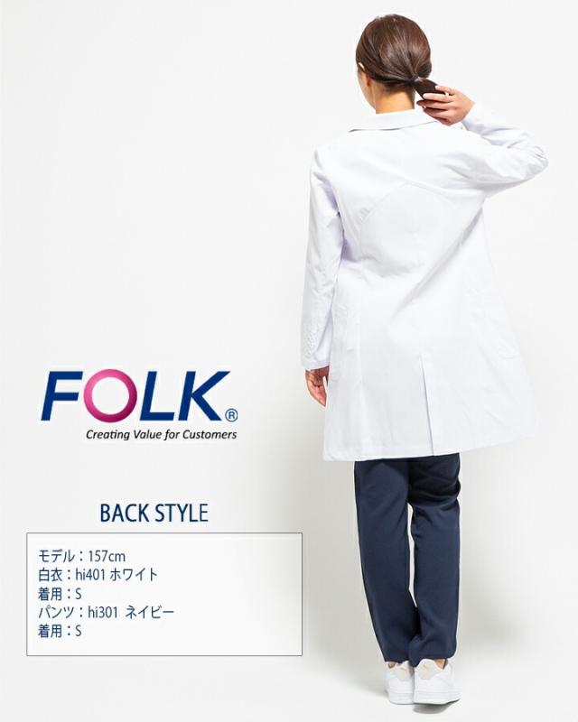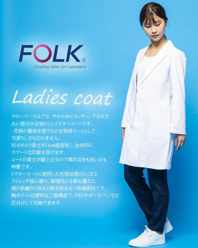 フォーク ドクターコート hi401 ワコール レディース 女性用 白衣 ユニフォーム 医師 医療用 歯科医 メディカルウェア クリニック エステ FOLK