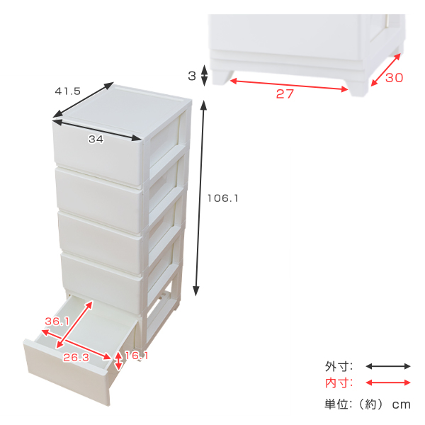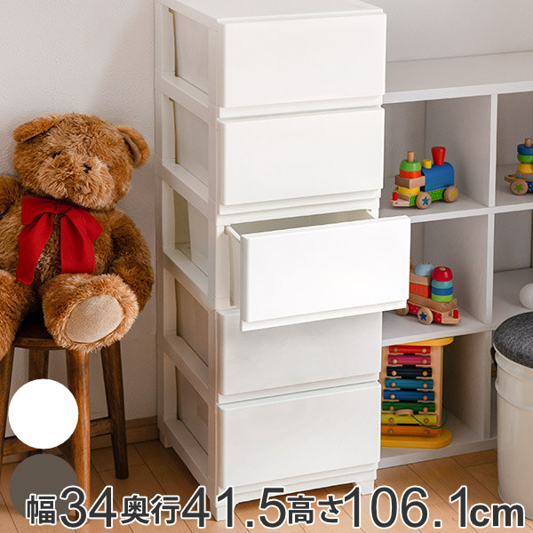 チェスト 幅34×奥行41.5×高さ106.1cm 5段 ( プラスチック スリムチェスト スリム タンス 引き出し 白 茶 プラスチックチェスト 収納ケース 衣類収納 リビング 収納 日本製 おしゃれ )