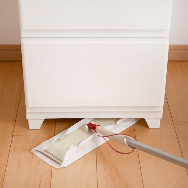 脚と床の間には約3cmの隙間があり、フローリングワイパーなどを入れてお掃除をすることが出来ます。