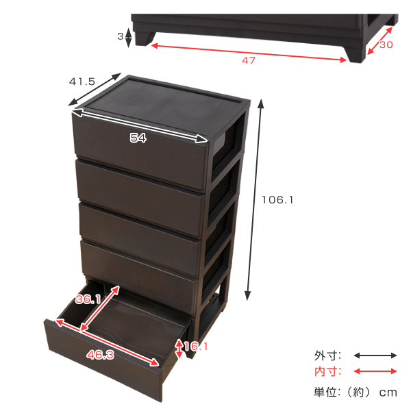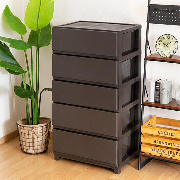 チェスト 幅54×奥行41.5×高さ106.1cm 5段 ワイド ( プラスチック スリムチェスト スリム タンス 引き出し 白 茶 プラスチックチェスト 収納ケース 衣類収納 リビング 収納 日本製 おしゃれ )