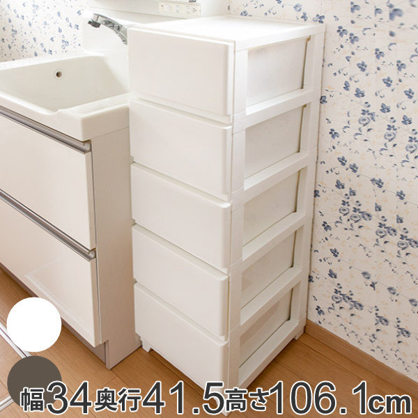 チェスト 幅34×奥行41.5×高さ106.1cm 5段 ( プラスチック スリムチェスト スリム タンス 引き出し 白 茶 プラスチックチェスト 収納ケース 衣類収納 リビング 収納 日本製 おしゃれ )