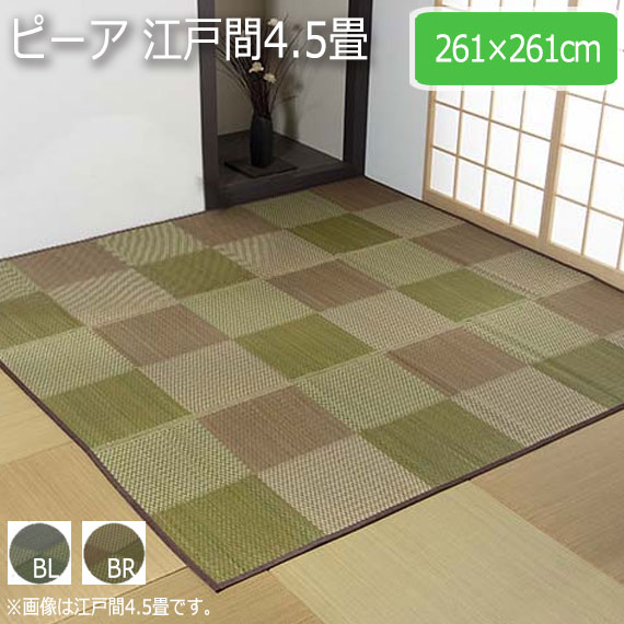 ピーア 江戸間4.5畳 261×261cm (ラグマット ラグ カーペット い草 角型 和 和室 洋 洋室 普通織 両面 市松柄 高級感 モダン 抗菌 防臭 ブルー ブラウン おしゃれ おすすめ)