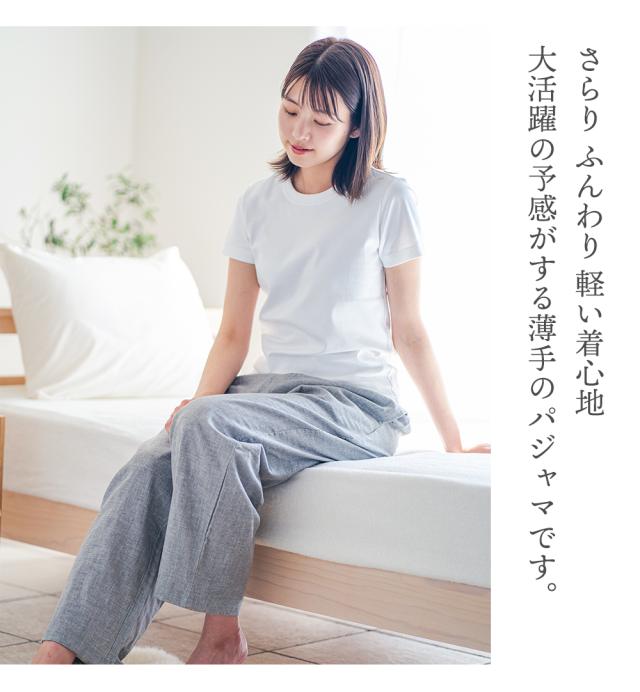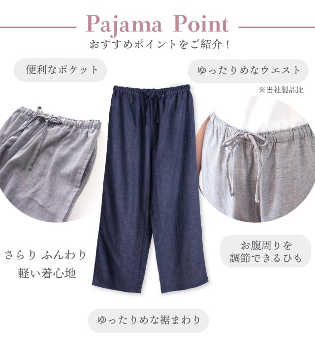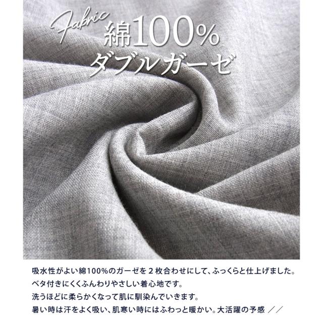 - ダブルガーゼが柔らかく、ウエストも大きめでゆったりしている。適度な保温性もあって、エアコンのきいた部屋での冷え対策にも良い感じ。