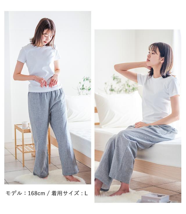 ルームパンツ レディース 綿100% ダブルガーゼ パジャマ 春 夏 初秋 無地 S M L LL かわいい 家族 おそろい リンクコーデ ペア プレゼント 母の日 lck556