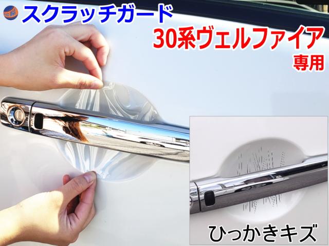 ドアノブスクラッチガード (ヴェルファイア 30系) 【メール便 送料無料】車種専用 カット済み ドア 傷 防止 フィルム ガード ドアカップ スクラッチ PPFフィルム ペイント プロテクションフィルム 擦りキズ H3 AGH30W AGH35W AYH30W GGH30W GGH35W トヨタ