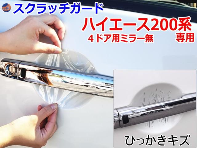ドアノブスクラッチガード (ハイエースH2 4D ミラー無) 車種専用 カット済み ドア 傷 防止 フィルム ガード ドアカップ スクラッチ PPFフィルム ペイント プロテクションフィルム 擦りキズ ひっかき 保護 クリア 透明 KDH200 TRH200 200系 4ドア用