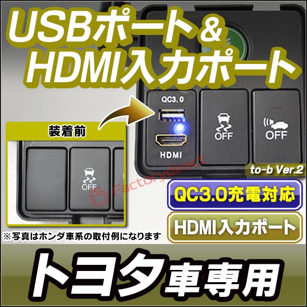 送料無料usb-to-b Ver.2 (高さ約33mm) TOYOTA トヨタ車系 QC3.0 USB急速充電 & HDMI入力 カーUSBポート (増設 USB充電 電圧計 カスタム パーツ usbポート 車 カスタムパーツ hdmi usb ポート 充電 車用品 スマホ 充電器 車載充電器 ドレスアップ)