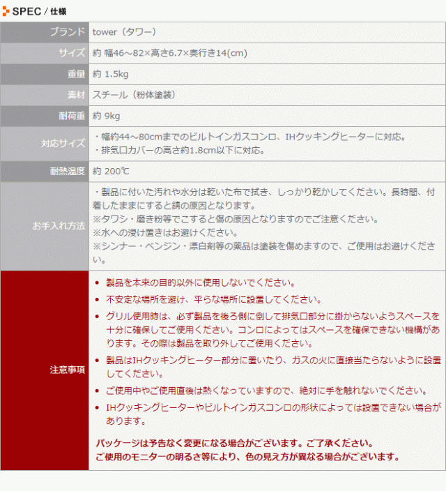 排気口カバー ワイド tower タワー 60cm 75cm 44〜80cmまで対応 IH ガスコンロ 収納