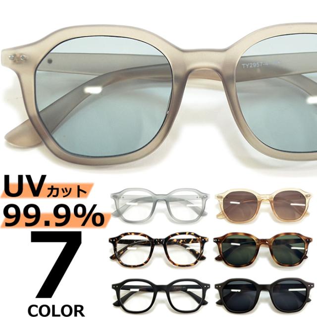【全7色】 サングラス 伊達メガネ 八角形 オクタゴン 多角形フレーム ボストン ラウンド 丸メガネ ライトカラーレンズ 薄い色 カラーレンズサングラス アジアンフィット メンズ レディース