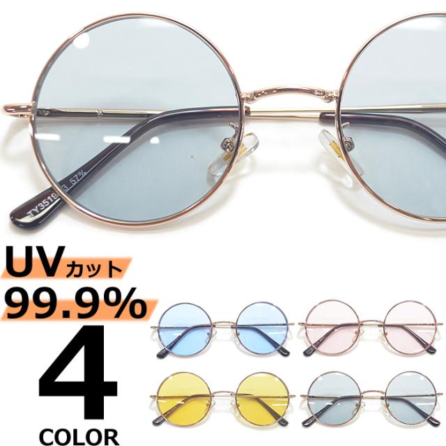 【全4色】 伊達メガネ サングラス ボストン ラウンド 丸メガネ 丸型 ライトカラーレンズ 薄い色 カラーレンズサングラス メンズ レディース UVカット
