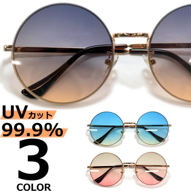 サングラス 伊達メガネ メンズ レディース ラウンド ボストン 丸メガネ ツーポイント 縁なし リムレス 丸型 グラデーションレンズ 大きいレンズ ライトカラーレンズ 薄い色 ゴールド スモーク ブラウン ブルー イエロー ピンク 全3色