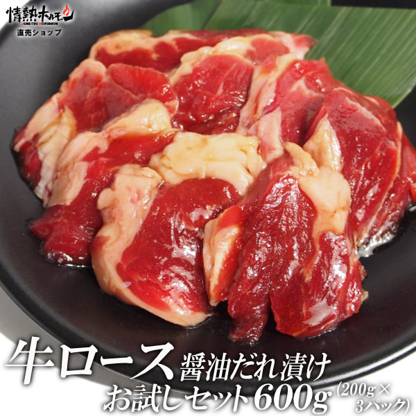 焼肉 牛 ロース 醤油だれ漬け お試し セット 600g バーベキュー BBQ 食品 牛肉 肉 情熱ホルモン 情ホル 北海道沖縄配送は別途送料追加