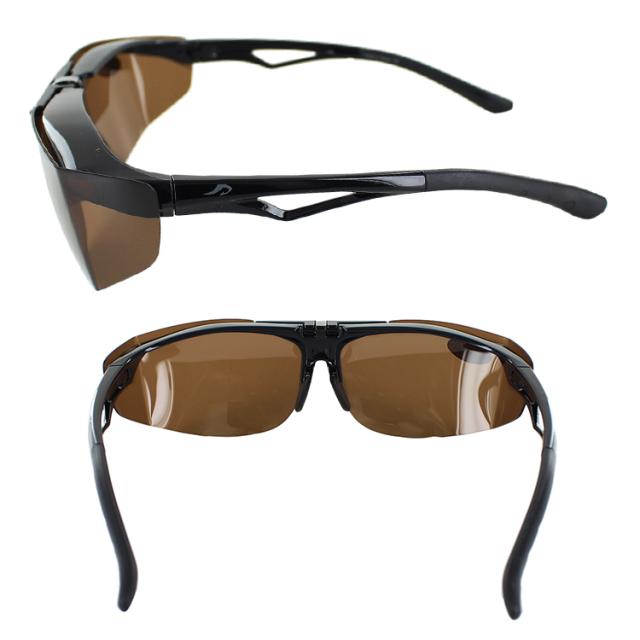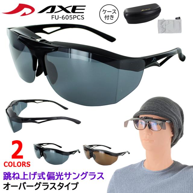 オーバーサングラス メガネの上から 偏光サングラス 跳ね上げ 偏光レンズ オーバーグラス メンズ レディース 大型メガネ対応 UVカット 紫外線対策 FU-605PCS AXE アックス 釣り 運転 ドライブ ゴルフ スポーツ ケース付き ブラック/スモーク/ブラウン【送料無料※沖縄以外】