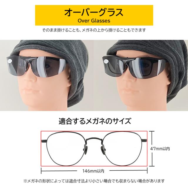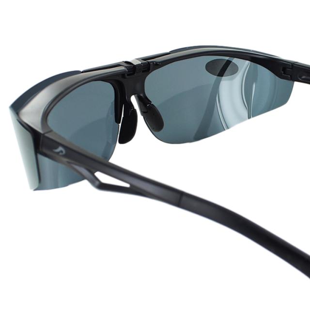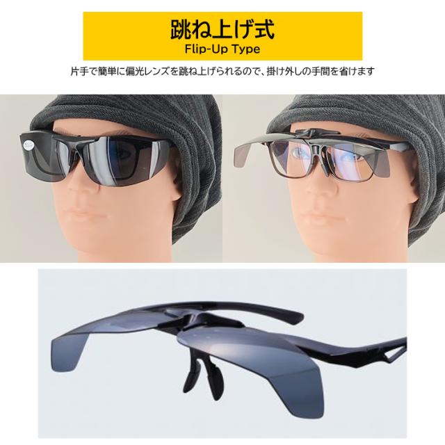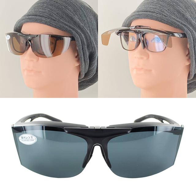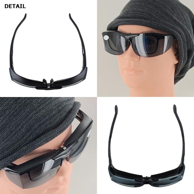 メガネの上から着用可能!遠近両用の大型メガネも収まる、跳ね上げタイプのオーバーグラス。