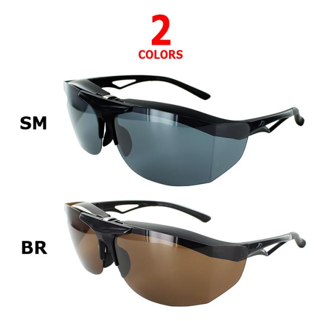 | SM フレーム:マットブラック レンズ:スモーク(偏光) BR フレーム:シャイニーブラック レンズ:ブラウン(偏光) | レンズ/トリアセテート(TAC) フレーム/硬質ナイロンフレーム(TR-90) ●仕様 UV400プロテクション パノラミックビューレンズ フレキシブルラバーテンプル フレキシブルノーズパッド 跳ね上げ |