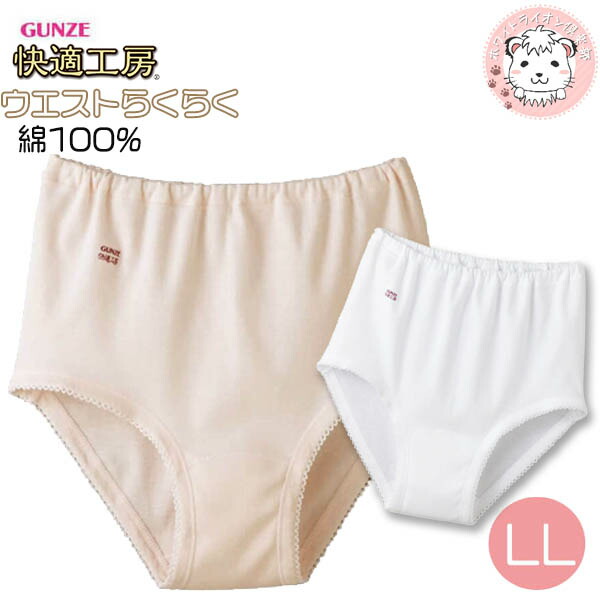 グンゼ 快適工房 ショーツ ウエストらくらく 綿100% 抗菌防臭 LL | 腰ゴム取替可 ゆったり設計 やわらか 無地 レディース 綿 肌着 インナー KQ3270 GUNZE