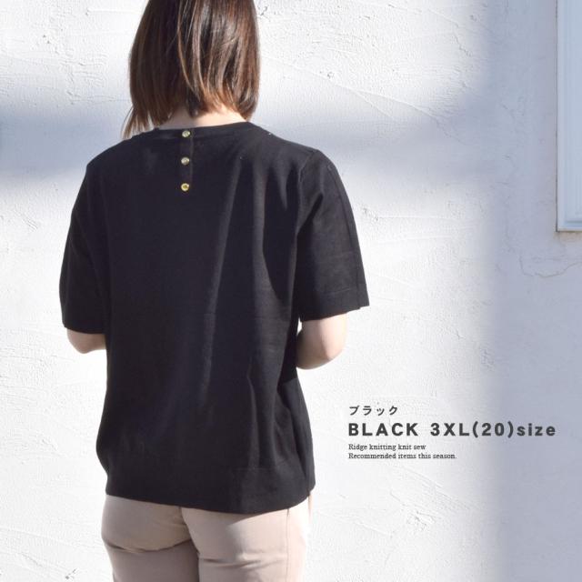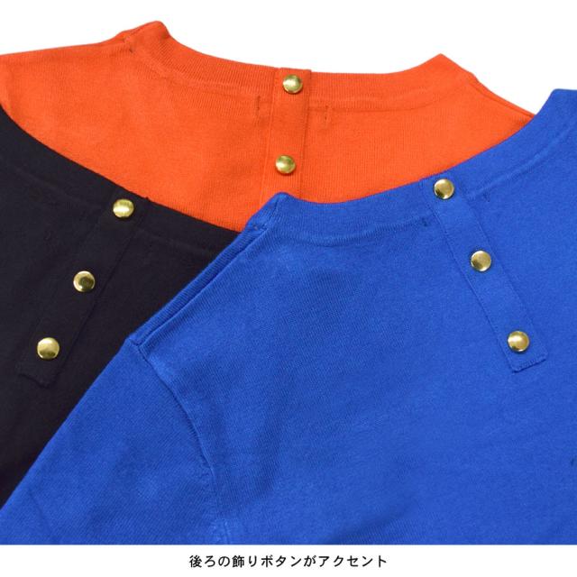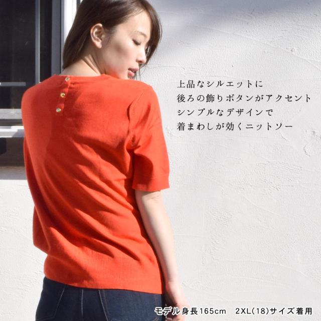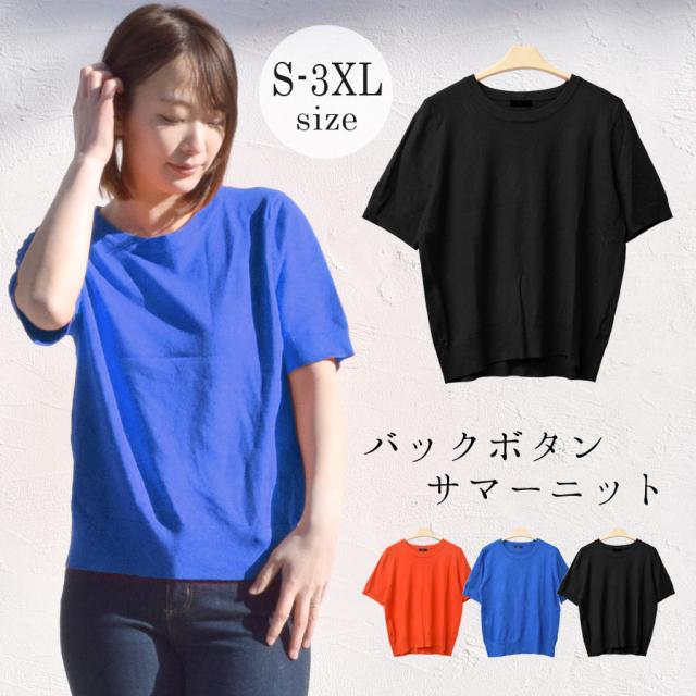 ニットソー 半袖 サマーニット カットソー レディース トップス ボタンデザイン ブラウス 飾りボタン シンプル カジュアル 無地 伸縮性 ストレッチ クルーネック きれいめ 上品 ゆったり 大きいサイズ ルーズ 差し色 送料無料 fk25 (bdg399)