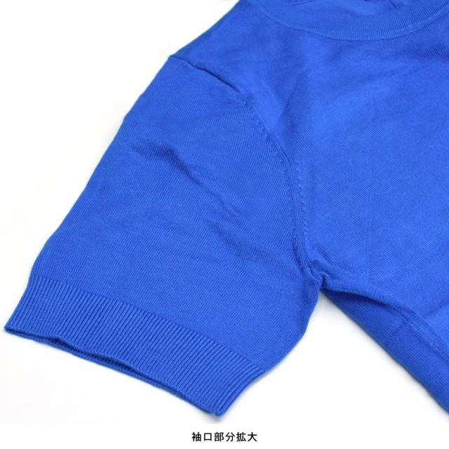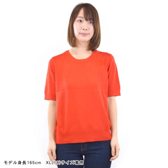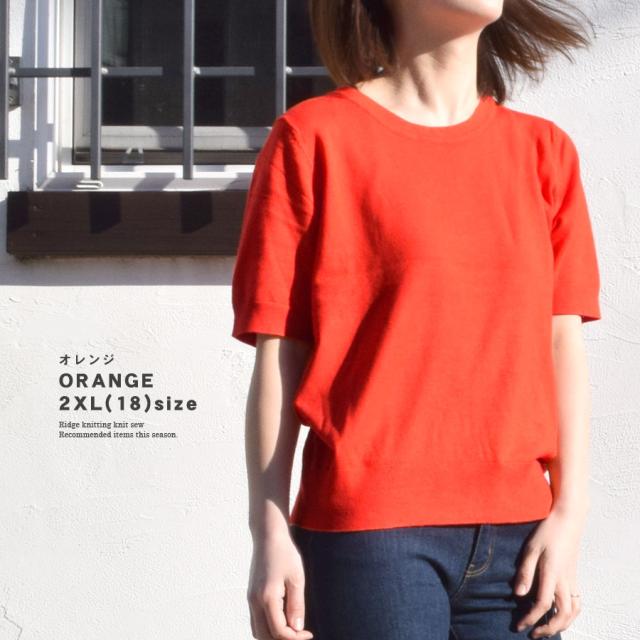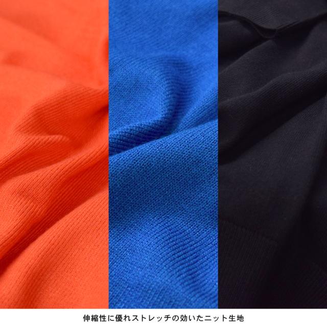 【伸縮性 ストレッチ クルーネック 丸首 きれいめ 上品 オレンジ ブルー ブラック 青 黒】