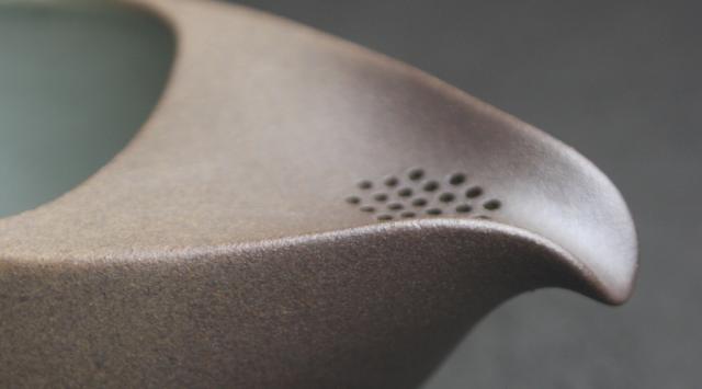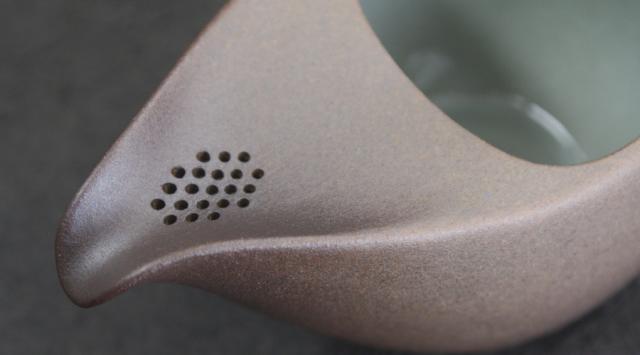 茶こし穴から注ぎ口に向かってくぼみを作り、注ぎ口をV型に仕上げてありますので、お茶の流れが良くなり、急須に残さず注ぎ切りやすくなっています。