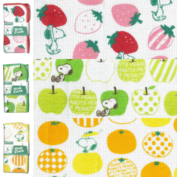 ●スヌーピーとフルーツの絵柄が目を引く、ディッシュクロスです。