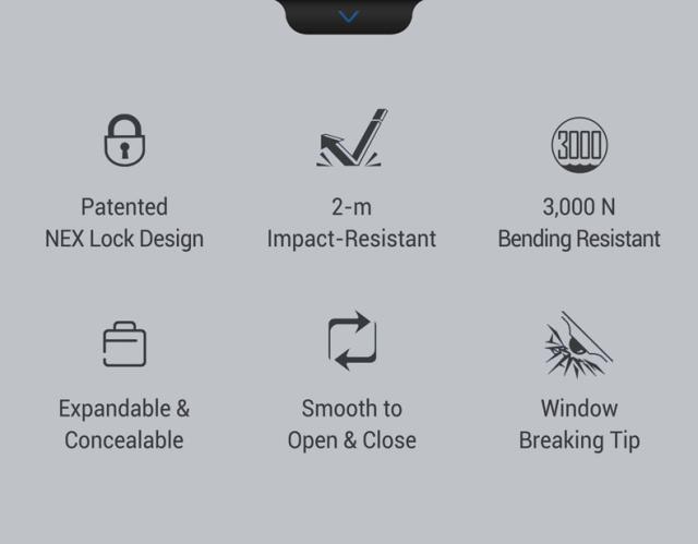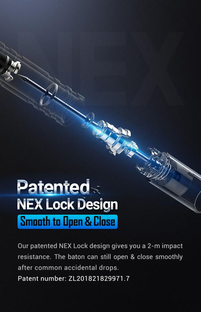 NEXLOCKは誰でも簡単にバラしたり組み立てたりが可能で、中身が分かり易くメンテナンスが楽な構造とも言えます(動画をご参照ください)。2mの落下試験にも合格する耐衝撃強度も兼ね備えていて、バトンはガタツキも少なくスムースな開閉は取り扱いを容易にします。