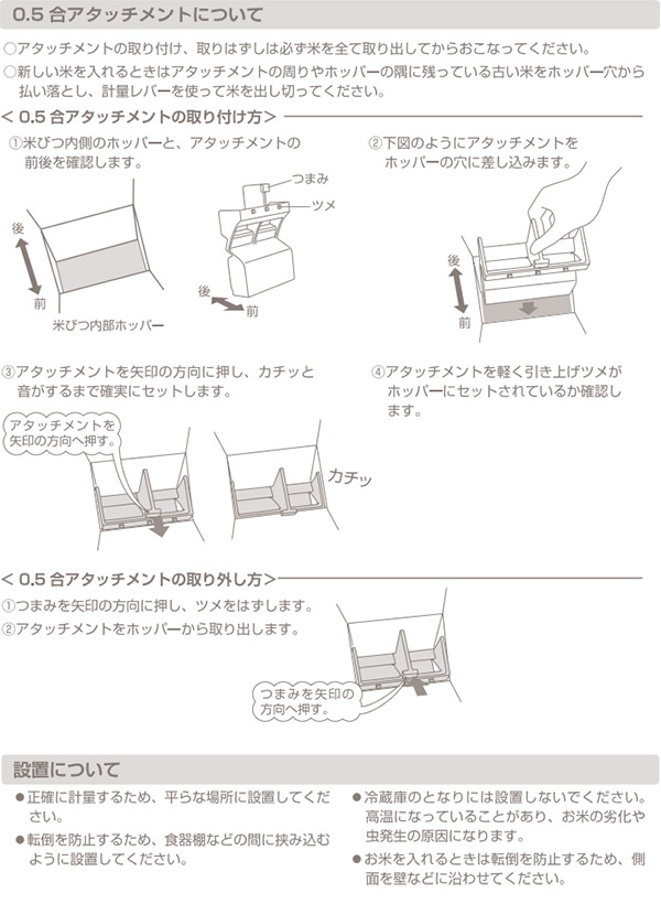 ※続けて計量されるときは、お米が計量口に溜まるまで少し時間をおいてください。