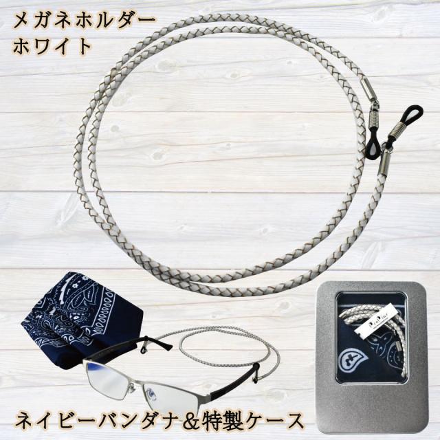 メガネチェーン メガネストラップ 眼鏡チェーン 眼鏡ストラップ グラスホルダー 紐 老眼鏡 牛革 ケース バンダナ 3色 送料無料 白 黒 茶【pp-meganeleather】