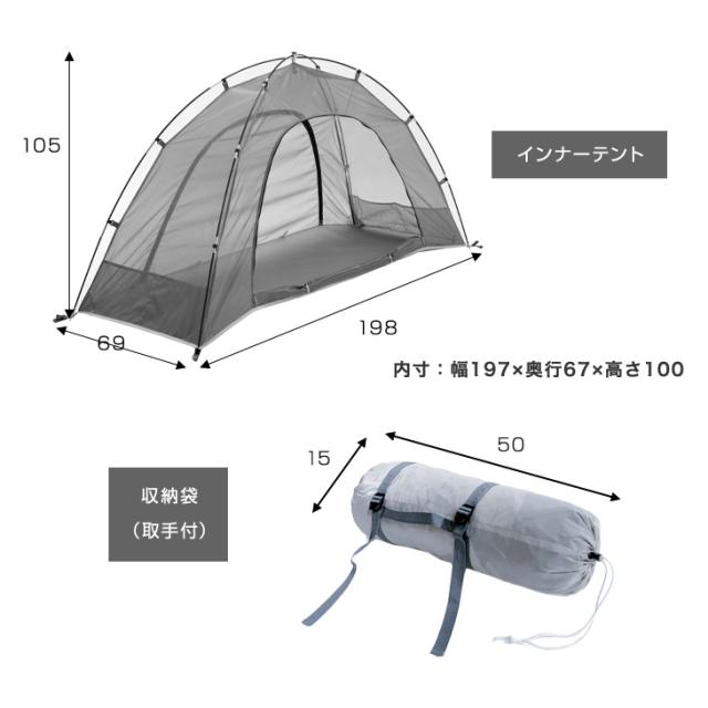 テント 1人用 軽量 1人用テント コット用 200×70 幅70 コンパクト ソロテント 収納袋 収納バッグ 一人用テント コット用テント 寝具 一人キャンプ ソロキャンプ 組み立て式 アウトドア キャンプ