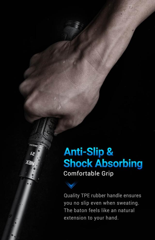 NEXLOCKは誰でも簡単にバラしたり組み立てたりが可能で、中身が分かり易くメンテナンスが楽な構造とも言えます(動画をご参照ください)。2mの落下試験にも合格する耐衝撃強度も兼ね備えていて、バトンはガタツキも少なくスムースな開閉は取り扱いを容易にします。