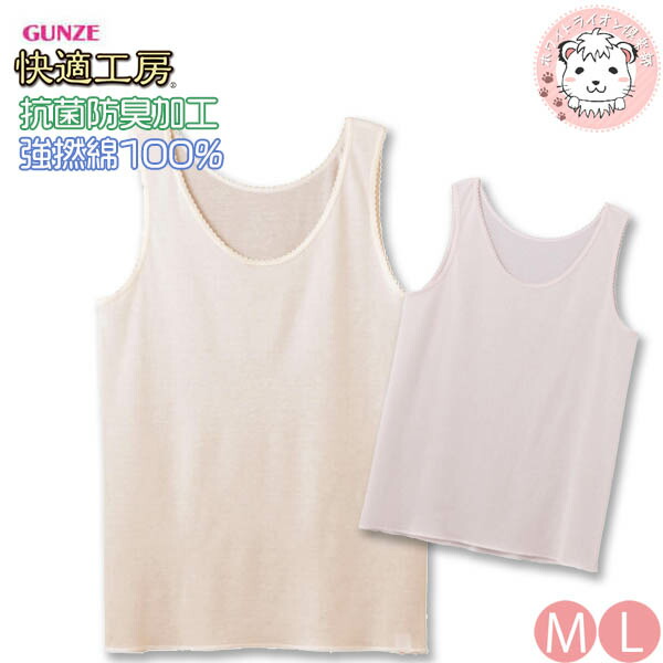 グンゼ 快適工房 ラン型スリーマー 綿100% 抗菌防臭 M/L/LL | 強撚 春夏 無地 レディース 綿 タンクトップ 下着 肌着 インナー KQ4454 GUNZE