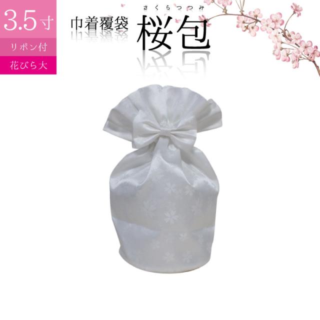 骨袋 骨壷カバー【覆い袋のみ】桜包 さくらつつみ 花びら大 ホワイト リボン付き 3.5寸 仏具 仏壇 骨壷 骨壺 骨壷カバー 49日 後飾り お悔やみ 供養 犬 猫 ペット供養にも ペットロス【メール便対応】