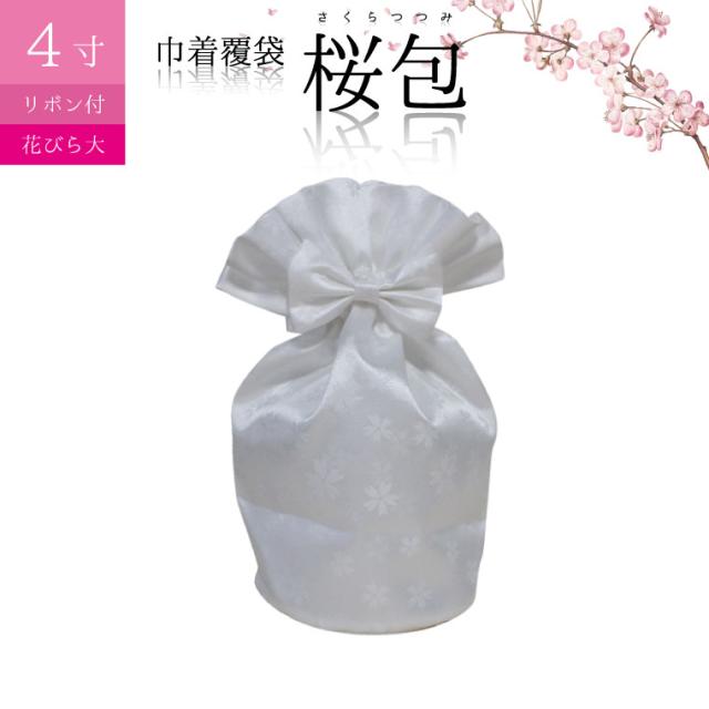 骨袋 骨壷カバー【覆い袋のみ】桜包 さくらつつみ 花びら大 ホワイト リボン付き 4寸 仏具 仏壇 骨壷 骨壺 骨壷カバー 49日 後飾り お悔やみ 供養 犬 猫 ペット供養にも ペットロス【メール便対応】