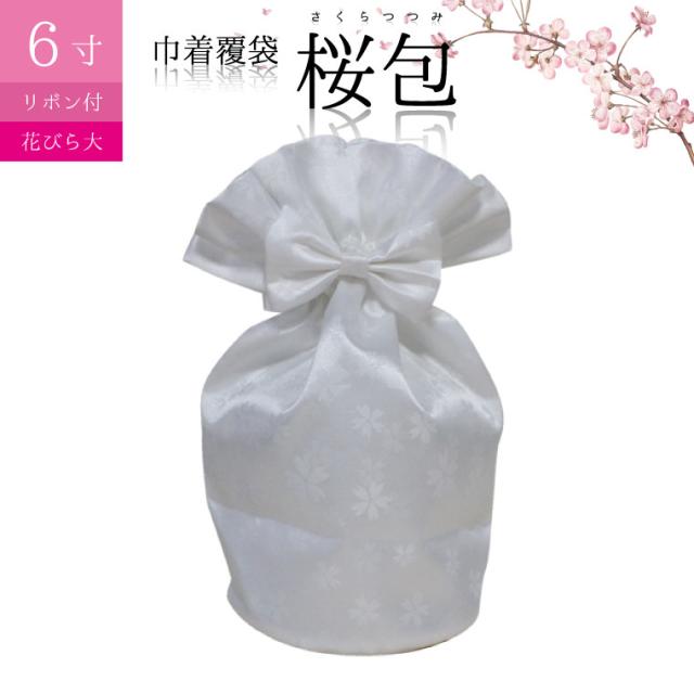 骨袋 骨壷カバー【覆い袋のみ】桜包 さくらつつみ 花びら大 ホワイト リボン付き 6寸 仏具 仏壇 骨壷 骨壺 骨壷カバー 49日 後飾り お悔やみ 供養 犬 猫 ペット供養にも ペットロス